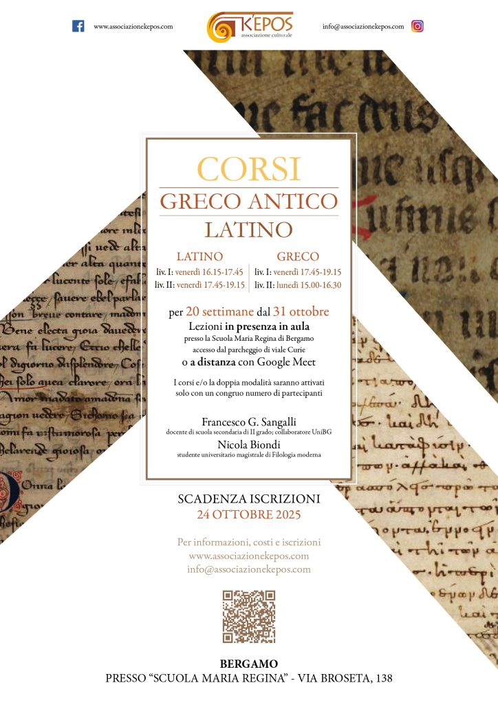 Per il 15° anno consecutivo stiamo per dare avvio ai nostri corsi di latino e greco per adulti!