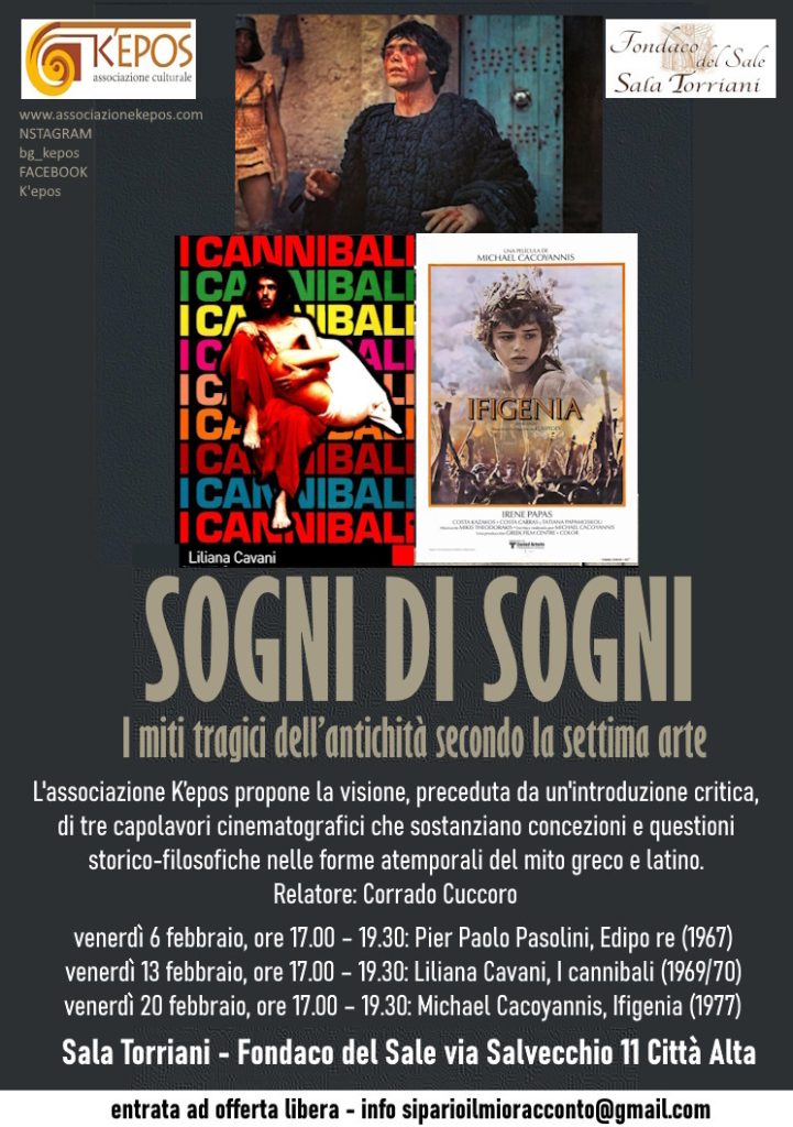 L’Associazione K’epos propone la visione, preceduta da un’introduzione critica, di tre capolavori cinematografici che sostanziano concezioni e questioni storico-filosofiche nelle forme atemporali del mito greco e latino.